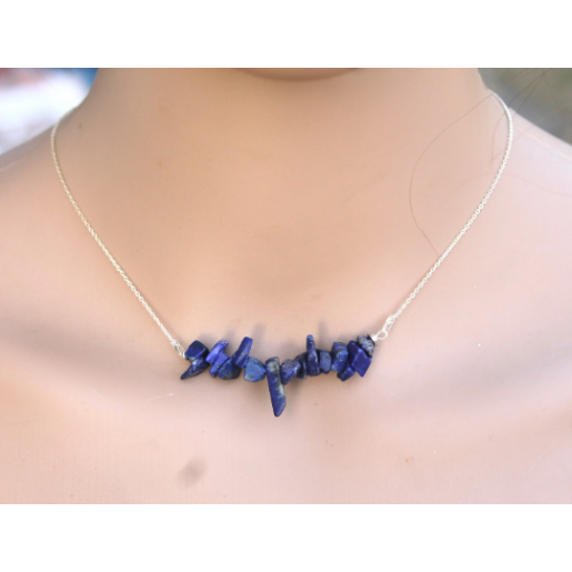 Entièrement réalisé à la main, ce collier est composé d'une chaine en argent massif et perles naturelles en Lapis Lazuli