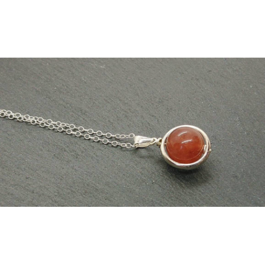 Pendentif en Pierre de soleil cerclé d'argent massif